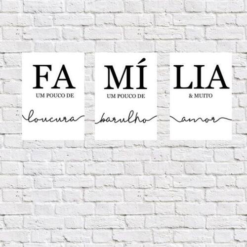 Kit 3 Placas Decorativas Família 18X27Cm Informações do produto tire todas as suas dúvidas no descritivo abaixo: placas decorativas são tendência e uma excelente ideia para decorar ambientes de forma econômica e bonita, elas são leves e extremamente fáceis de instalar; além de servir para a decoração de qualquer ambiente, indo desde estabelecimentos como barbearias e bares, até quartos, sala, área de lazer, churrasqueira, etc. Ou ainda, e por que não, poder quebrar aquele galho tampando imperfeições indesejadas da parede com um toque especial medidas - cada peça tem 18x27cm. Material do papel - papel fotográfico brilhante de altíssima resolução - de 3 meses. Marca: Não Informado