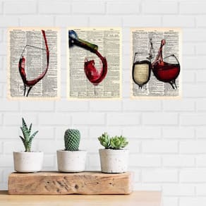 Kit 3 Placas Decorativas Vinho 18x27cm