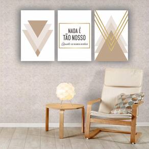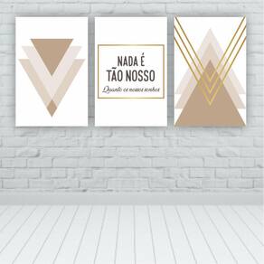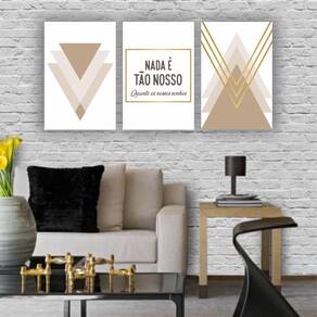 Kit 3 Placas Decorativos 20X30 Abstrato Nada É Tão Nosso Kit 3 quadros decorativos mosaicos Material: Quadros decorativos produzido em mdf - medidas por peça: 1 peça de 30x20cm 1 peça de 30x20cm 1 peça de 30x20cm Medida total do quadro instalado 60x30cm - informações técnicas: O quadro não precisa de moldura, estão pronto para pendurar na parede. São feitos em adesivos fosco e impressos em alta qualidade. Aplicado em mdf com espessura de 3mm. Não é necessário furar a parede para instalação, pois, enviamos fitas 3m com grande poder adesivo para facilitar a instalação. É necessário na hora da instalação posicionar o quadro em 1cm de largura entre eles para melhor qualidade de visualização. - instalação: Limpe o local que vai ser instalado o quadro com um pano úmido, após secar o local, visualize como Vai ser o alinhamento, e retire a proteção da fita dupla face parte verde da fita e pressione No lugar desejado para a fixação. - limpeza após fixação: A limpeza pode ser realizada apenas com um pano seco macio, se desejar pode ser úmido Porém sem conter álcool ou produtos químicos. Ean: 1001001058914