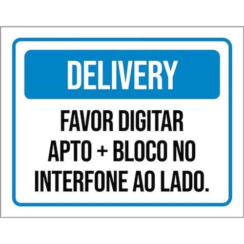 Kit 3 Placas Delivery Favor Digitar Apto Bloco Interfone Placas de sinalizaço fabricadas com poliestireno de alto impacto PSAI de 2mm e impressão ultravioleta.