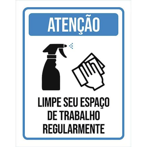 Kit 3 Placas Distanciamento Social Limpe Espaço Trabalho Placas de sinalizaço fabricadas com poliestireno de alto impacto PSAI de 2mm e impressão ultravioleta.