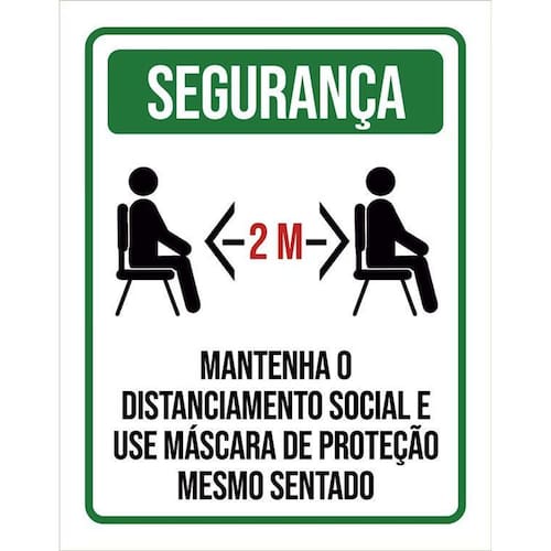 Kit 3 Placas Distanciamento Social Use Máscara Sentado