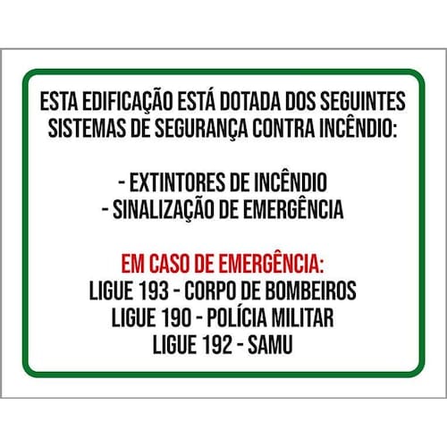 Kit 3 Placas Edificação Sistema Segurança Contra Incêndio Placas de sinalizaço fabricadas com poliestireno de alto impacto PSAI de 2mm e impressão ultravioleta.