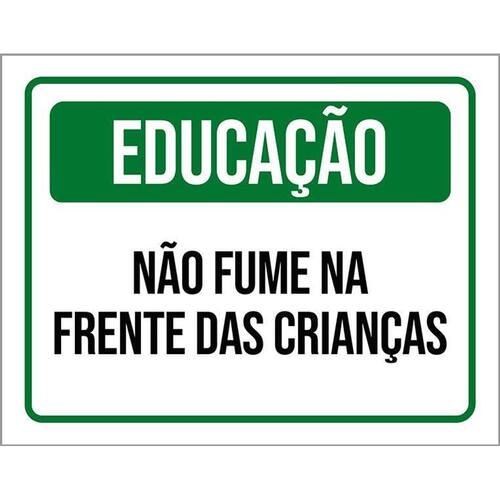 Kit 3 Placas Educação Não Fume Na Frente Das Crianças Placas de sinalizaço fabricadas com poliestireno de alto impacto PSAI de 2mm e impressão ultravioleta.