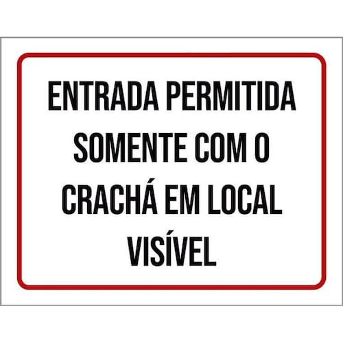 Kit 3 Placas Entrada Permitida Somente Com Crachá Visível Placas de sinalizaço fabricadas com poliestireno de alto impacto PSAI de 2mm e impressão ultravioleta.