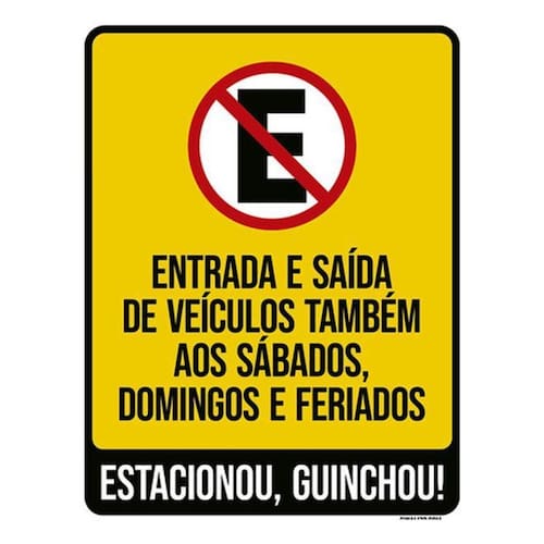 Kit 3 Placas Estacionou Guinchou Placas de sinalizaço fabricadas com poliestireno de alto impacto PSAI de 2mm e impressão ultravioleta.