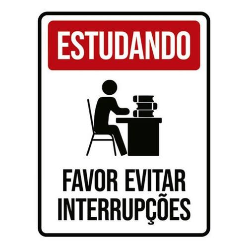 Kit 3 Placas Estudando Favor Evitar Interrupções Placas de sinalizaço fabricadas com poliestireno de alto impacto PSAI de 2mm e impressão ultravioleta.