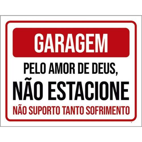 Kit 3 Placas Garagem Pelo Amor Não Estacione 36x46 Placas de sinalizaço fabricadas com poliestireno de alto impacto PSAI de 2mm e impressão ultravioleta.