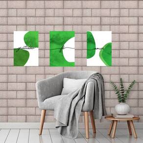 Kit 3 Placas Gratidão Fé Amor Verde 18x27cm