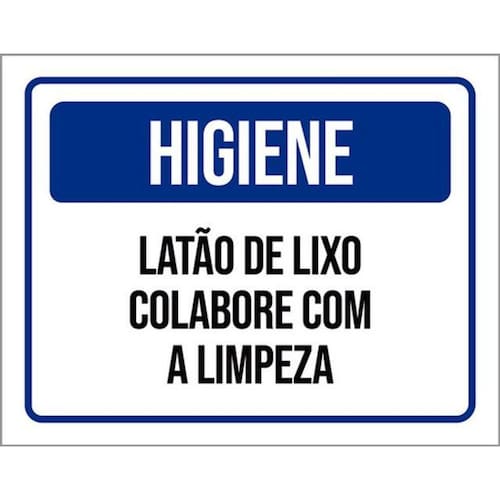 Kit 3 Placas Higiene Latão Lixo Colabore Com Limpeza 36x46 Placas de sinalizaço fabricadas com poliestireno de alto impacto PSAI de 2mm e impressão ultravioleta.