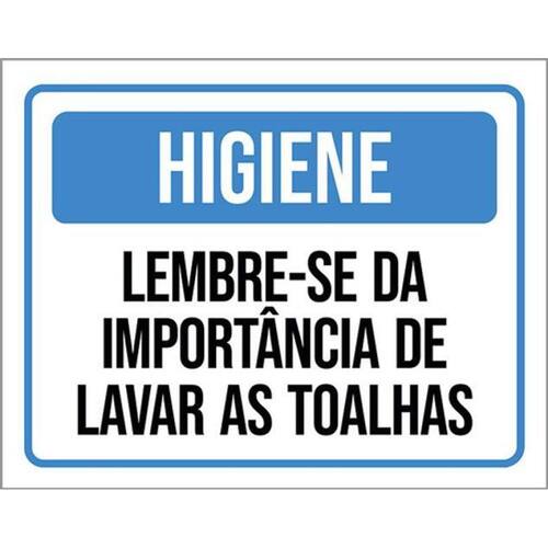 Kit 3 Placas Higiene Lembre-se Importância Lavar Toalhas Placas de sinalizaço fabricadas com poliestireno de alto impacto PSAI de 2mm e impressão ultravioleta.