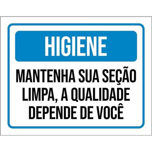 Kit 3 Placas Higiene Mantenha Sua Seção Limpa Qualidade Placas de sinalizaço fabricadas com poliestireno de alto impacto PSAI de 2mm e impressão ultravioleta.