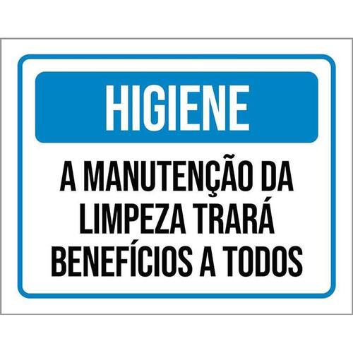Kit 3 Placas Higiene Manutenção Da Limpeza Trará Benefícios Placas de sinalizaço fabricadas com poliestireno de alto impacto PSAI de 2mm e impressão ultravioleta.
