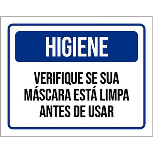 Kit 3 Placas Higiene Verifique Máscara Está Limpa Antes Usar Placas de sinalizaço fabricadas com poliestireno de alto impacto PSAI de 2mm e impressão ultravioleta.