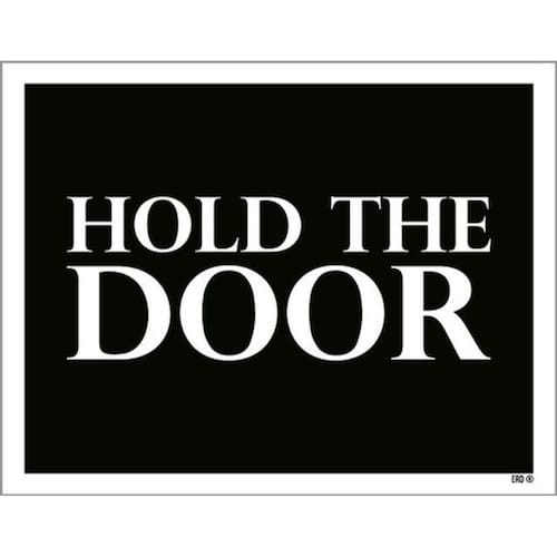 Kit 3 Placas Hold The Door 36x46 Placas de sinalizaço fabricadas com poliestireno de alto impacto PSAI de 2mm e impressão ultravioleta.