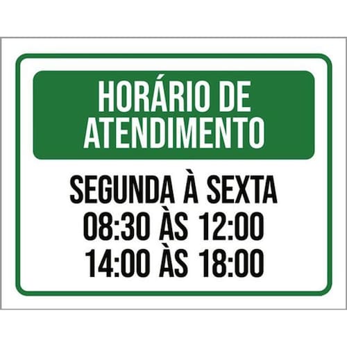Kit 3 Placas Horário Atendimento Segunda Sexta 8 12 14 18 Placas de sinalizaço fabricadas com poliestireno de alto impacto PSAI de 2mm e impressão ultravioleta.