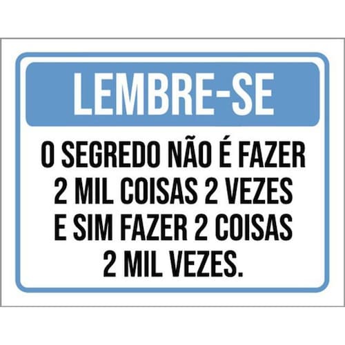 Kit 3 Placas Lembre-S Segredo Não Fazer 2 Mil Coisas 2 Vezes