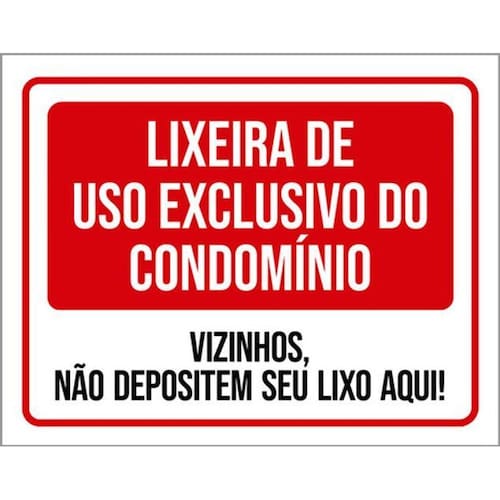 Kit 3 Placas Lixeira Condomínio Vizinhos Não Depositem Lixo Placas de sinalizaço fabricadas com poliestireno de alto impacto PSAI de 2mm e impressão ultravioleta.