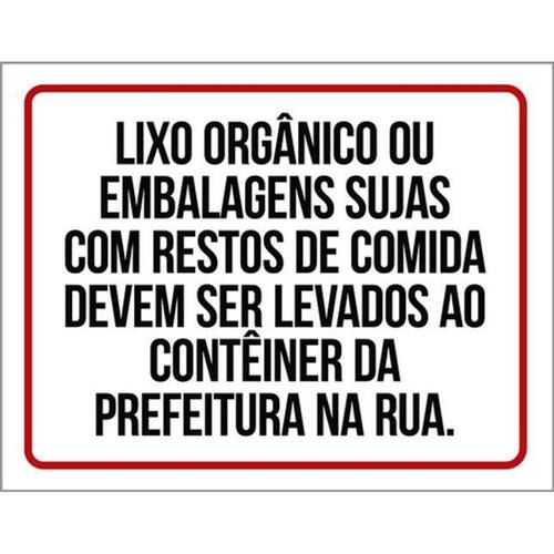 Kit 3 Placas Lixo Orgânico Embalagens Sujas Resto Comida Placas de sinalizaço fabricadas com poliestireno de alto impacto PSAI de 2mm e impressão ultravioleta.
