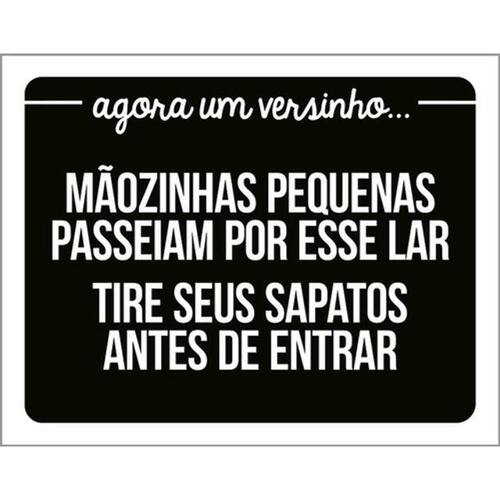 Kit 3 Placas Mãozinhas Pequenas Tire Sapatos Entrar Placas de sinalizaço fabricadas com poliestireno de alto impacto PSAI de 2mm e impressão ultravioleta.