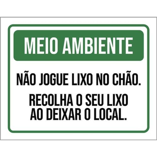 Kit 3 Placas Meio Ambiente Não Jogue Lixo No Chão 36x46 Placas de sinalizaço fabricadas com poliestireno de alto impacto PSAI de 2mm e impressão ultravioleta.
