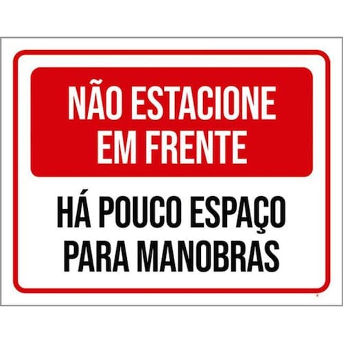 Kit 3 Placas Não Estacione Frente Há Pouco Espaço Manobras Placas de sinalizaço fabricadas com poliestireno de alto impacto PSAI de 2mm e impressão ultravioleta.
