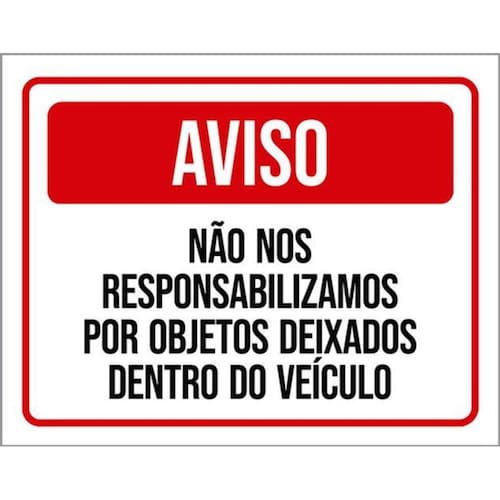 Kit 3 Placas Não Nos Responsabilizamos Objetos Deixados Placas de sinalizaço fabricadas com poliestireno de alto impacto PSAI de 2mm e impressão ultravioleta.