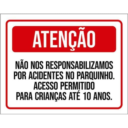 Kit 3 Placas Não Responsabilizamos Acidentes Parquinhos Placas de sinalizaço fabricadas com poliestireno de alto impacto PSAI de 2mm e impressão ultravioleta.