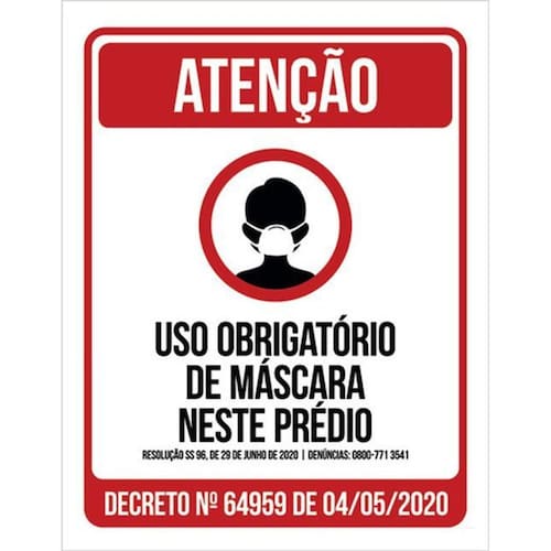 Kit 3 Placas Obrigatório Máscara Neste Prédio 36x46 Placas de sinalizaço fabricadas com poliestireno de alto impacto PSAI de 2mm e impressão ultravioleta.