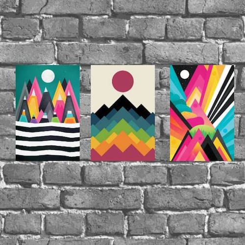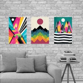 kit 3 Placas Parede Abstratas Coloridas 18x27cm