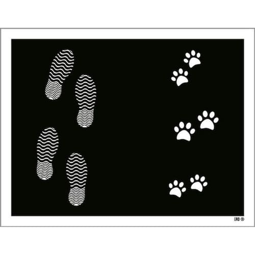 Kit 3 Placas Pegadas E Patinhas Preta Ml2776 36x46 Placas de sinalizaço fabricadas com poliestireno de alto impacto PSAI de 2mm e impressão ultravioleta.