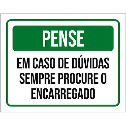 Kit 3 Placas Pense Dúvidas Sempre Procure Encarregado Placas de sinalizaço fabricadas com poliestireno de alto impacto PSAI de 2mm e impressão ultravioleta.
