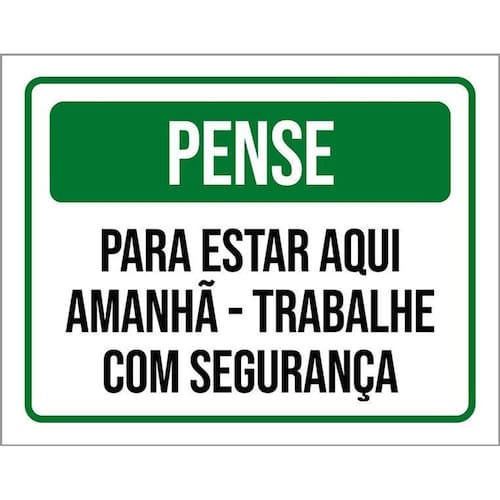 Kit 3 Placas Pense Estar Aqui Trabalhe Com Segurança Placas de sinalizaço fabricadas com poliestireno de alto impacto PSAI de 2mm e impressão ultravioleta.