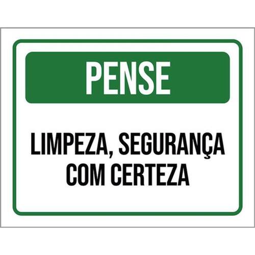 Kit 3 Placas Pense Limpeza Segurança Com Certeza Verde 36x46 Placas de sinalizaço fabricadas com poliestireno de alto impacto PSAI de 2mm e impressão ultravioleta.