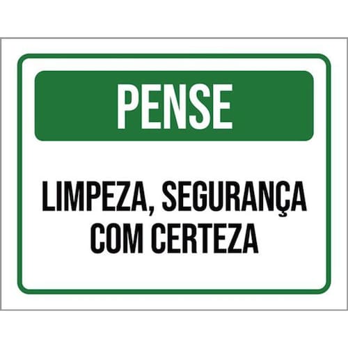 Kit 3 Placas Pense Limpeza Segurança Com Certeza Verde Placas de sinalizaço fabricadas com poliestireno de alto impacto PSAI de 2mm e impressão ultravioleta.