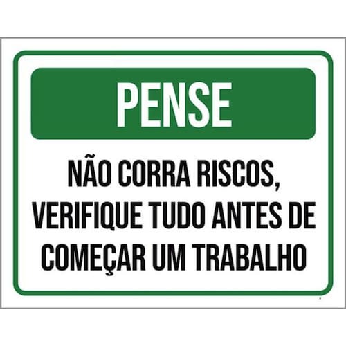 Kit 3 Placas Pense Não Corra Riscos Verifique Tudo Trabalho Placas de sinalizaço fabricadas com poliestireno de alto impacto PSAI de 2mm e impressão ultravioleta.