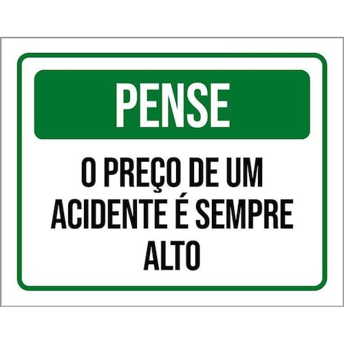 Kit 3 Placas Pense Preço De Um Acidente É Sempre Alto Placas de sinalizaço fabricadas com poliestireno de alto impacto PSAI de 2mm e impressão ultravioleta.