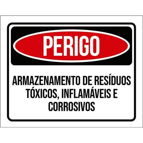 Kit 3 Placas Perigo Armazenamento Tóxicos Inflamáveis Placas de sinalizaço fabricadas com poliestireno de alto impacto PSAI de 2mm e impressão ultravioleta.