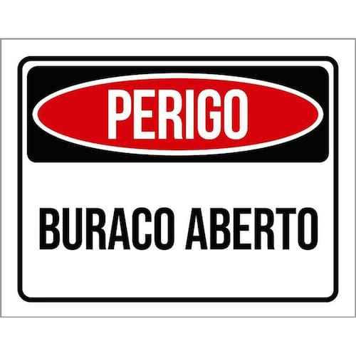 Kit 3 Placas Perigo Buraco Aberto Placas de sinalizaço fabricadas com poliestireno de alto impacto PSAI de 2mm e impressão ultravioleta.