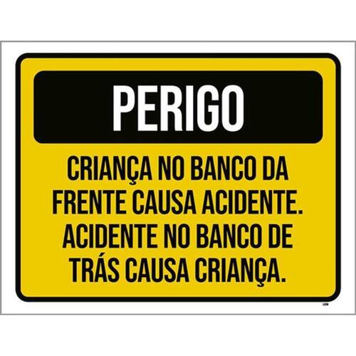 Kit 3 Placas Perigo Criança Banco Frente Acidente 36x46 Placas de sinalizaço fabricadas com poliestireno de alto impacto PSAI de 2mm e impressão ultravioleta.