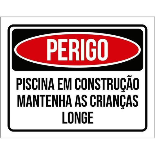 Kit 3 Placas Perigo Piscina Construção Crianças Longe Placas de sinalizaço fabricadas com poliestireno de alto impacto PSAI de 2mm e impressão ultravioleta.