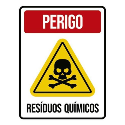 Kit 3 Placas Perigo Resíduos Químicos Caveira 36x46 Placas de sinalizaço fabricadas com poliestireno de alto impacto PSAI de 2mm e impressão ultravioleta.