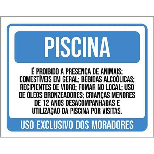 Kit 3 Placas Piscina Exclusivo Moradores 36x46 Placas de sinalizaço fabricadas com poliestireno de alto impacto PSAI de 2mm e impressão ultravioleta.