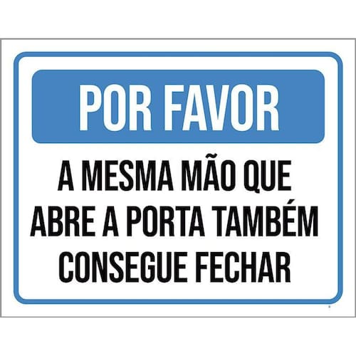Kit 3 Placas Por Favor Mesma Mão Abre Pora Fechar Porta