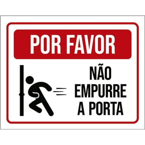 Kit 3 Placas Por Favor Não Empurre A Porta 36x46 Placas de sinalizaço fabricadas com poliestireno de alto impacto PSAI de 2mm e impressão ultravioleta.