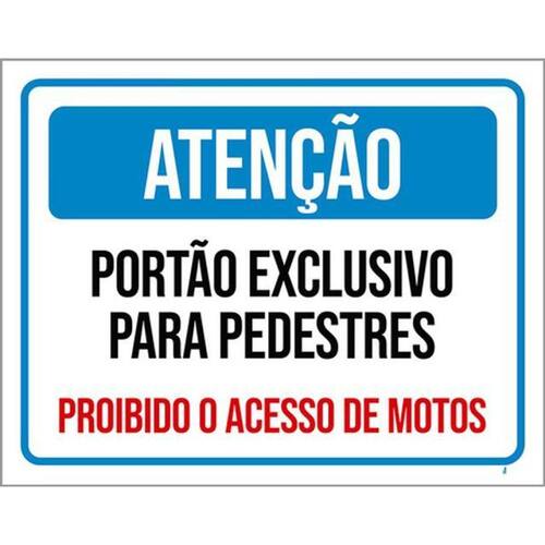 Kit 3 Placas Portão Exclusivo Pedestres Motos 36x46 Placas de sinalizaço fabricadas com poliestireno de alto impacto PSAI de 2mm e impressão ultravioleta.
