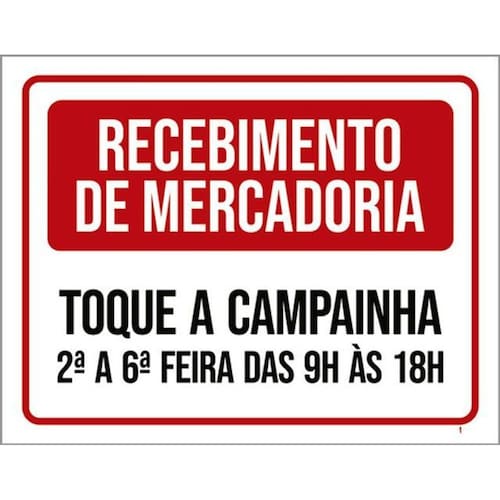 Kit 3 Placas Receimento Mercadoria Toque Campainha Placas de sinalizaço fabricadas com poliestireno de alto impacto PSAI de 2mm e impressão ultravioleta.
