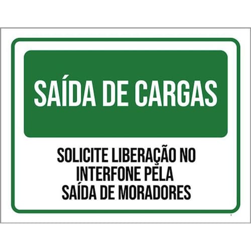 Kit 3 Placas Saída Cargas Liberação No Interfone 36x46 Placas de sinalizaço fabricadas com poliestireno de alto impacto PSAI de 2mm e impressão ultravioleta.