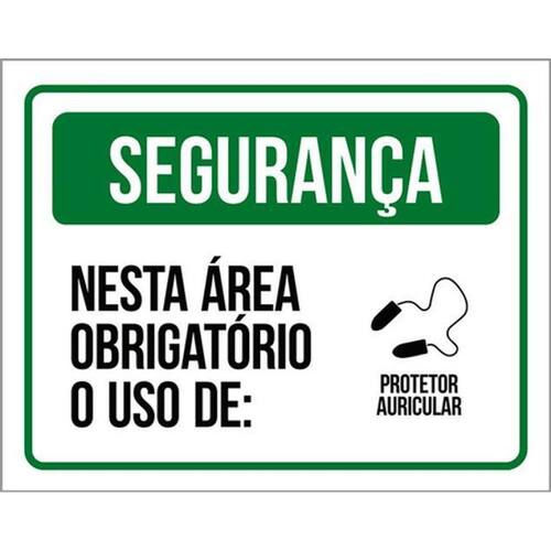 Kit 3 Placas Segurança Área Obrigatório Protetor Auricular Placas de sinalizaço fabricadas com poliestireno de alto impacto PSAI de 2mm e impressão ultravioleta.