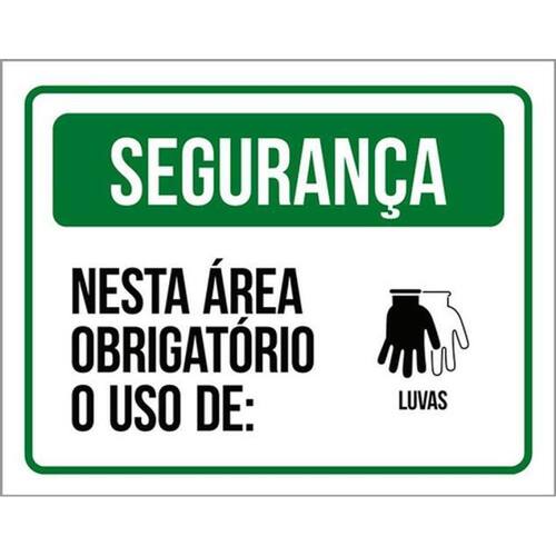 Kit 3 Placas Segurança Área Obrigatório Uso De Luvas Placas de sinalizaço fabricadas com poliestireno de alto impacto PSAI de 2mm e impressão ultravioleta.